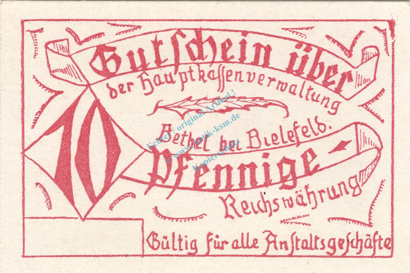Bethel , Notgeld 10 Pfennig -o.Kn.- unc-kfr. Ti.0565.05.06 , Westfalen o.D. Verkehrsausgabe