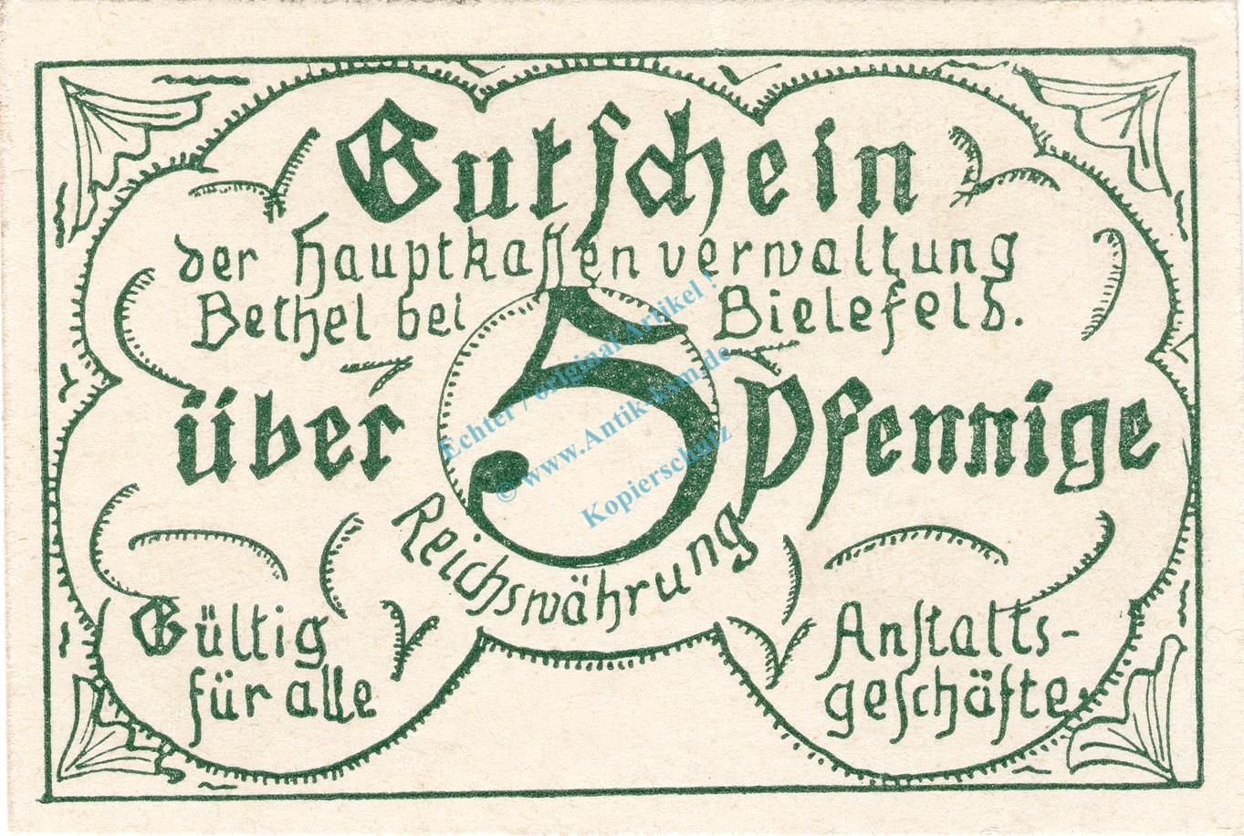 Bethel , Notgeld 5 Pfennig -o.Kn.- unc-kfr. Ti.0565.05.05 , Westfalen o.D. Verkehrsausgabe