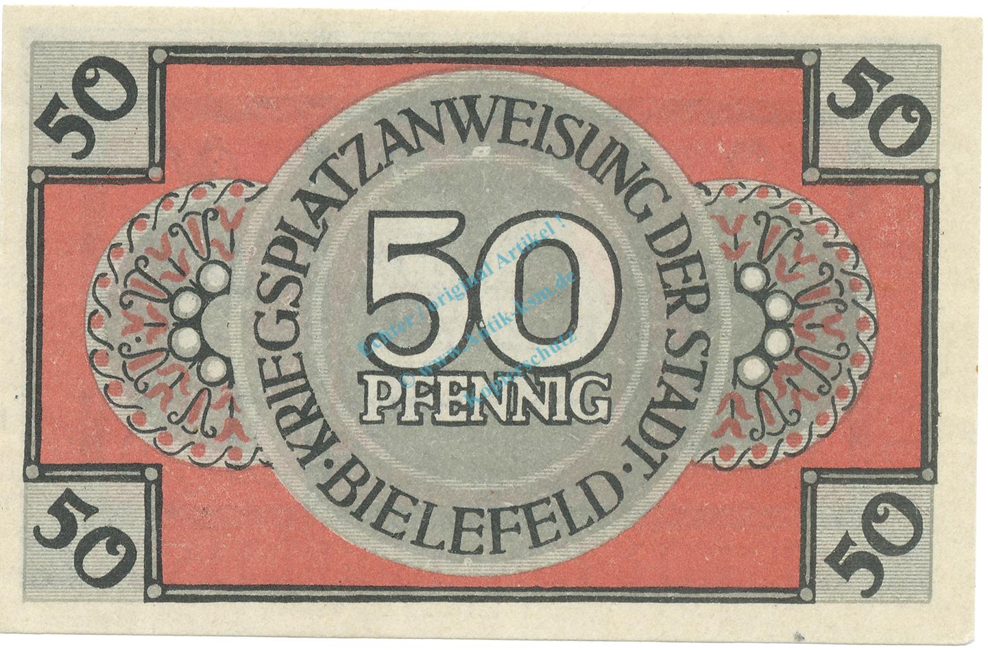 Bielefeld , Notgeld 50 Pfennig Schein unc-kfr. Ti.0620.05.60 NRW 1918 Verkehrsausgabe -4239-