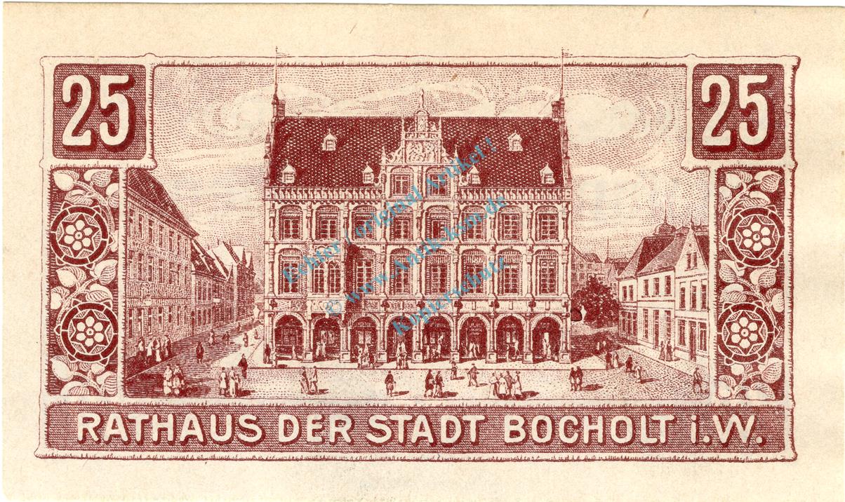 Bocholt , Notgeld 25 Pfennig Schein unc-kfr. Ti.0785.05.01 , Westfalen 1918 Verkehrsausgabe