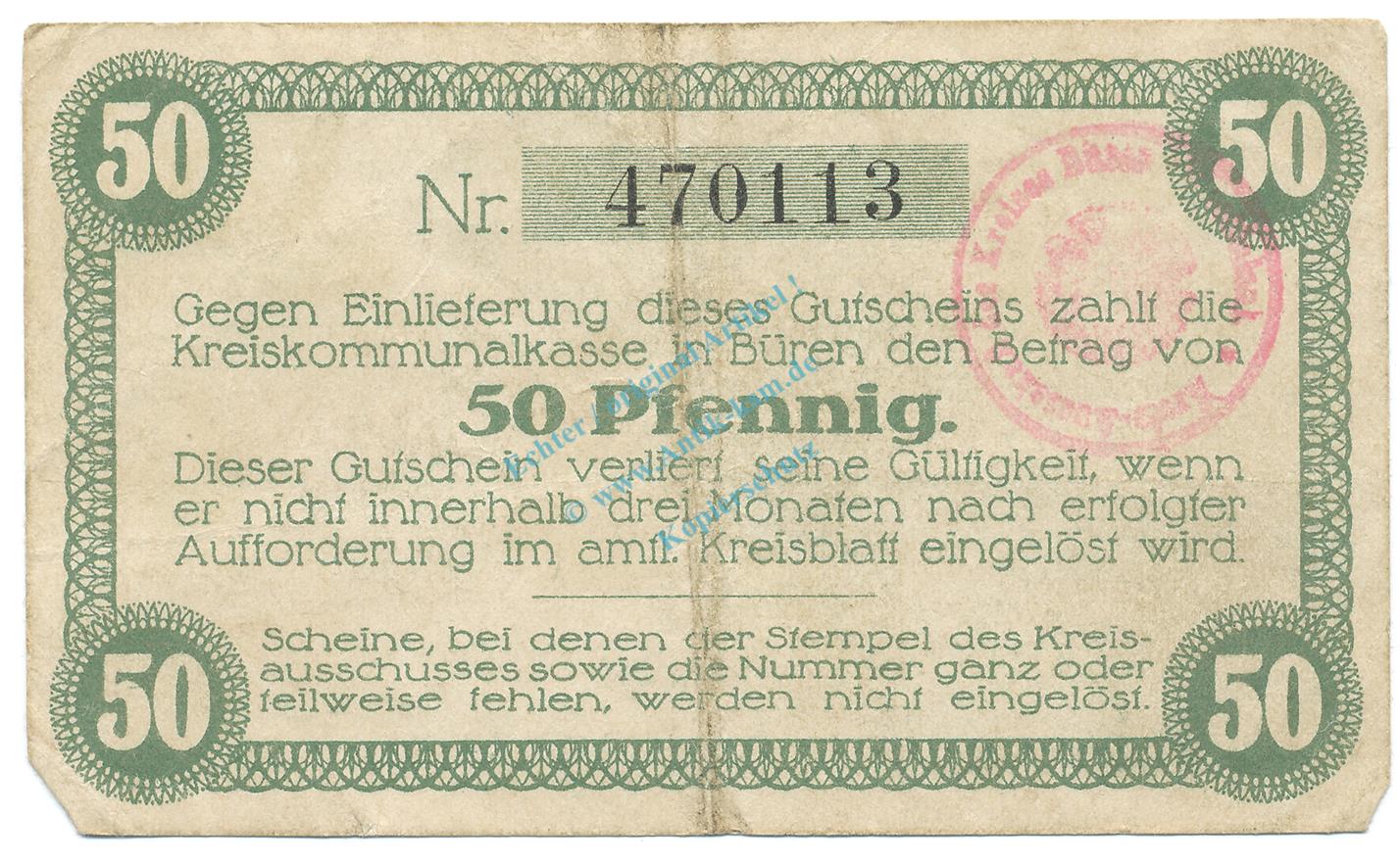 Büren , Notgeld 50 Pfennig Schein gbr. Ti.1010.05.05 NRW 1917 Verkehrsausgabe -4238-