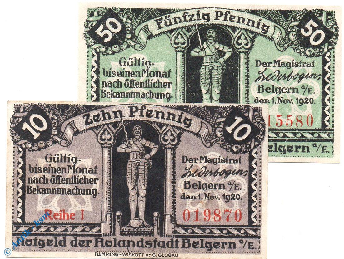 Notgeld Belgern , Set mit 2 Scheinen , Tieste 0390.05.01 und 02 , von 1920 , Sachsen Verkehrsausgabe