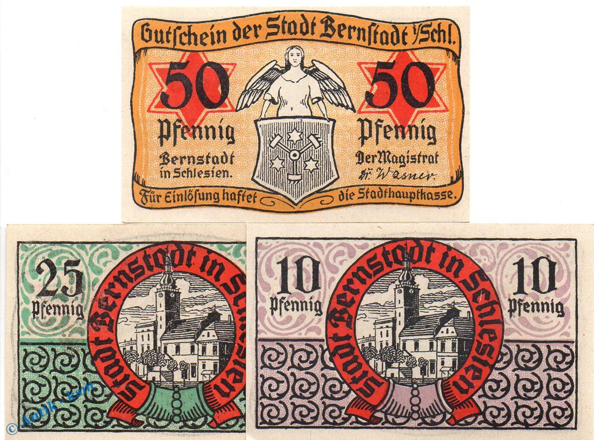 Der Notgeldsatz besteht aus : 10, 25 und 50 Pfennig