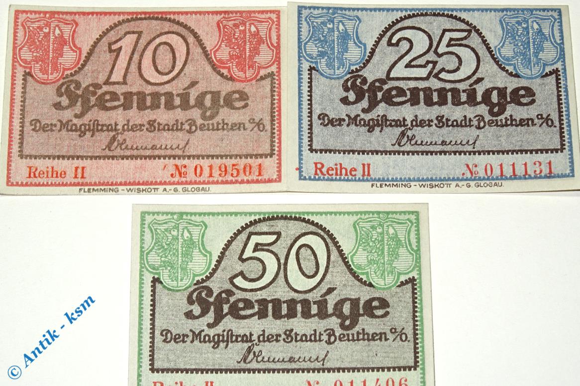 Notgeld Beuthen , Satz mit 3 Scheinen , Tieste 0570.10.05-07 , Schlesien Verkehrsausgabe