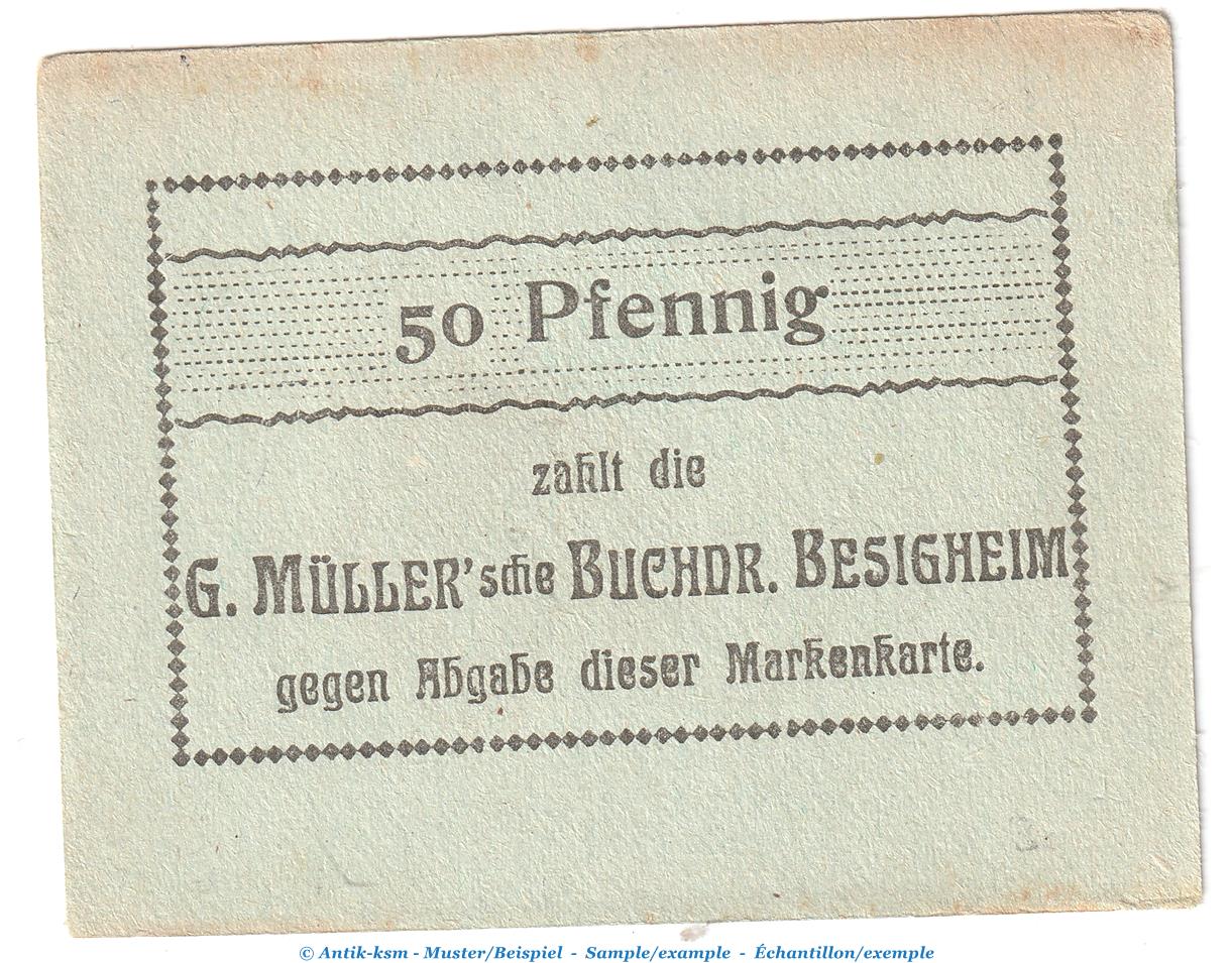 Gutschein / Banknote G. Müllersche Buchdruckerei Besigheim , Verkehrsausgabe