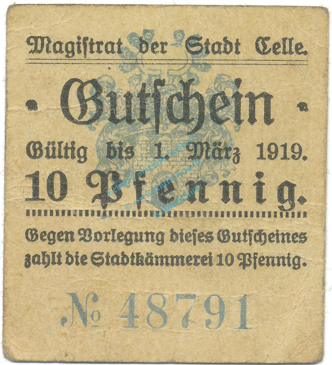 Celle , Notgeld 10 Pfennig Schein gbr. Tieste 1115.20.01  , NDS o.D. Verkehrsausgabe -4114-