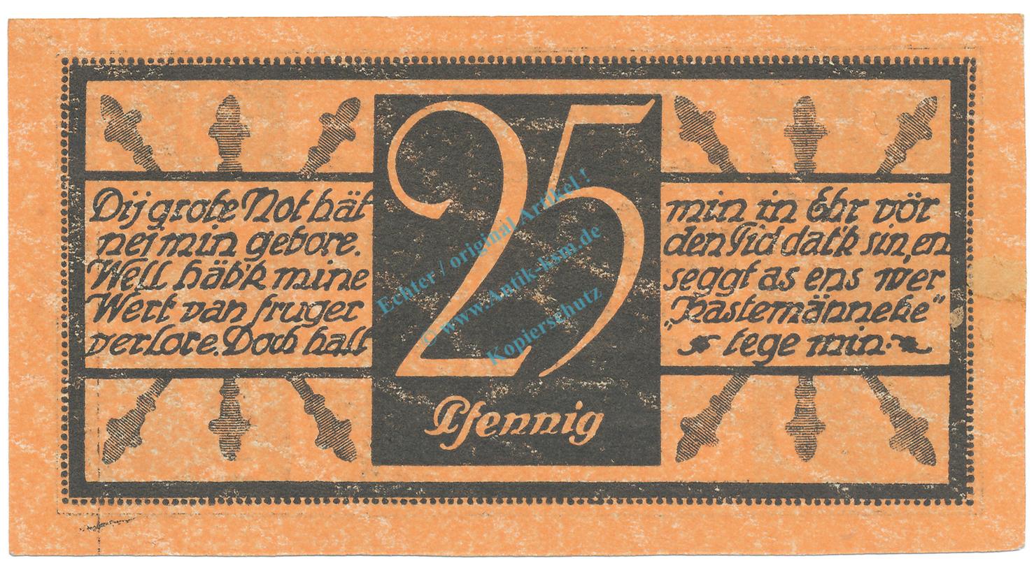 Cleve , Notgeld 25 Pfennig Schein unc-kfr. Tieste 1155.20.03 , RHL 1920 Verkehrsausgabe -4060-