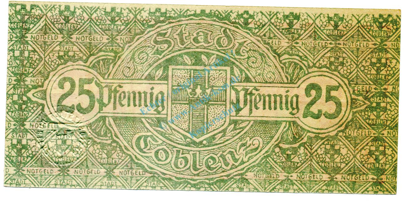 Coblenz , Notgeld 25 Pfennig Schein unc-kfr. Tieste 1165.60.26 , RHL 1920 Verkehrsausgabe -4066-