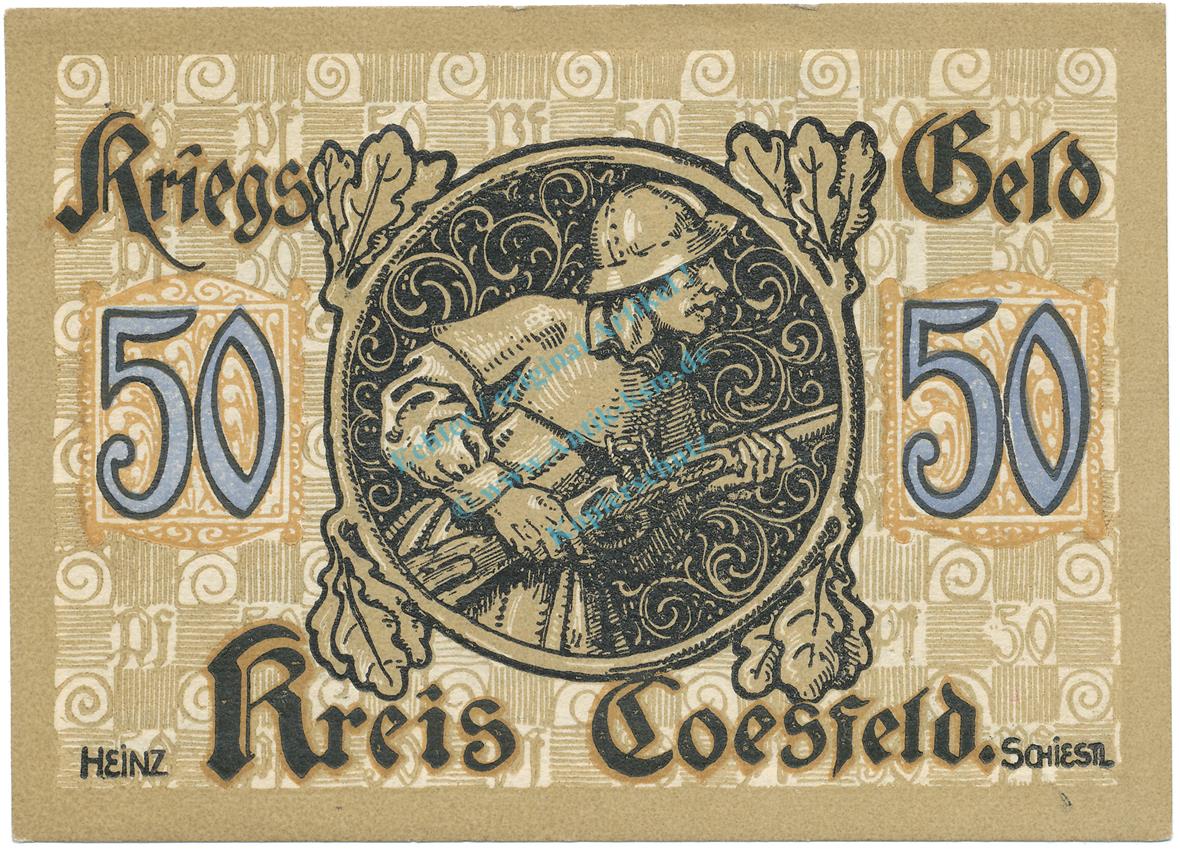 Coesfeld , Notgeld 50 Pfennig Schein unc-kfr. Tieste 1185.05.16 , NRW o.D. Verkehrsausgabe -4106-