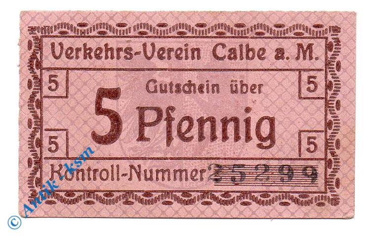 Notgeld Calbe , Verkehrsverein , 5 Pfennig Schein Karton , Tieste 1065.15.10 , Sachsen Verkehrsausgabe