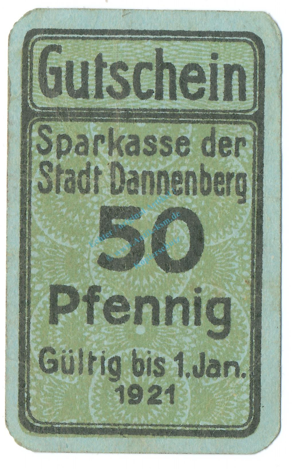 Dannenberg , Notgeld 50 Pfennig Schein unc-kfr. Tieste 1285.05.06 NDS o.D. Verkehrsausgabe -0832-