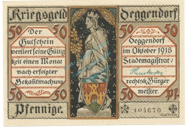 Deggendorf , Notgeld 50 Pfennig Schein unc-kfr. Tieste 1315.25.16 BAY 1918 Verkehrsausgabe -4082-