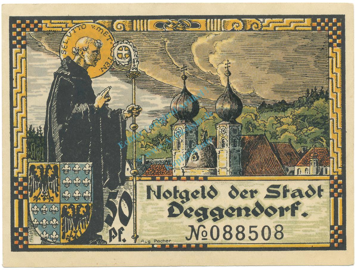 Deggendorf , Notgeld 50 Pfennig Schein unc-kfr. Tieste 1315.25.21 BAY 1920 Verkehrsausgabe -4080-