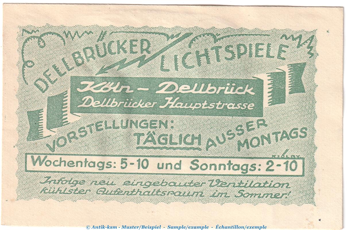 Gutschein / Banknote Dellbrücker Lichtspiele Köln Dellbrück , Verkehrsausgabe