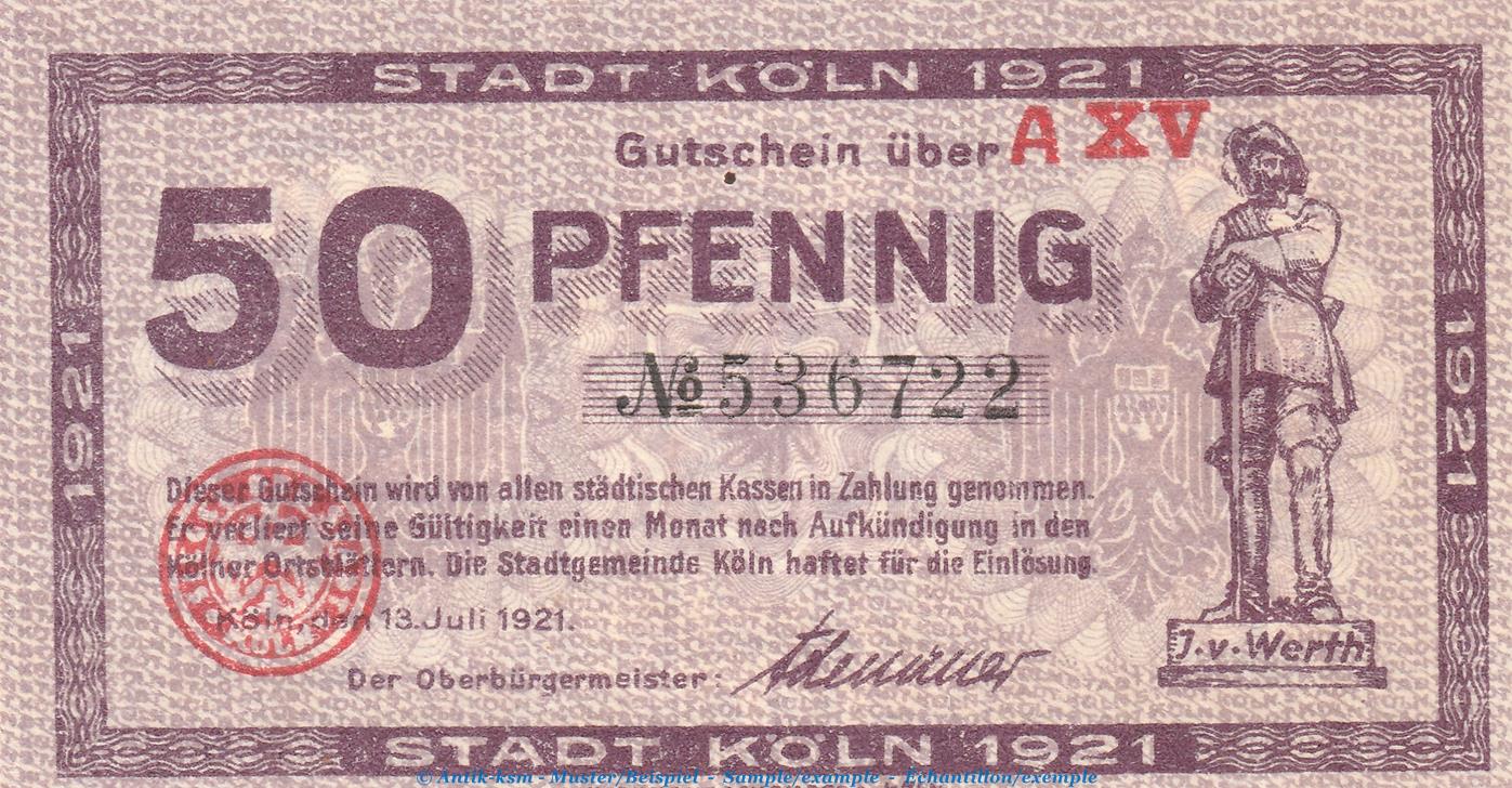 Gutschein / Banknote der Stadt Köln , Verkehrsausgabe