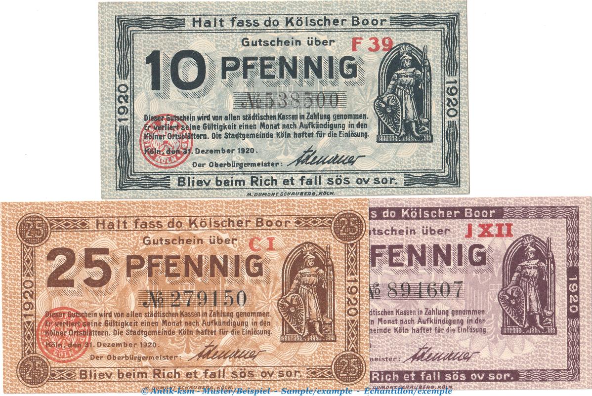 Das Notgeld Set besteht aus 1 x : 10, 25 und 50 Pfennig