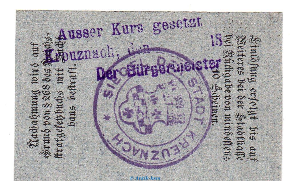 Notgeld Schein der Stadt Kreuznach , Verkehrsausgabe