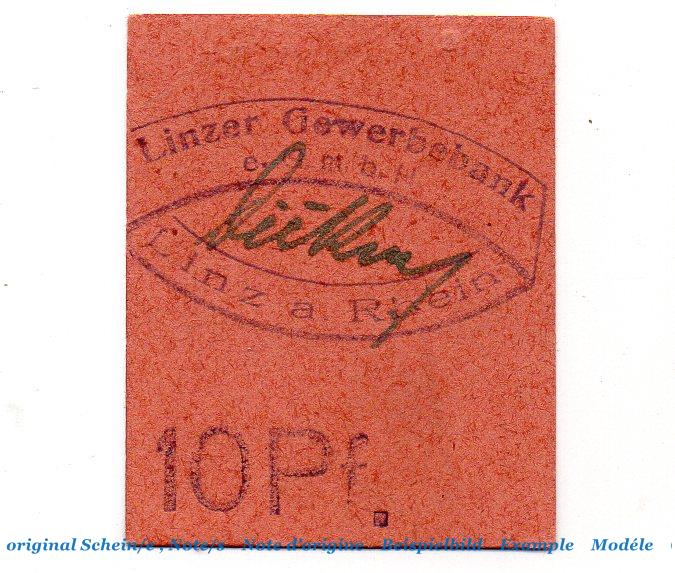 Der Notgeldsatz besteht aus : 10 Pfennig Schein , orange