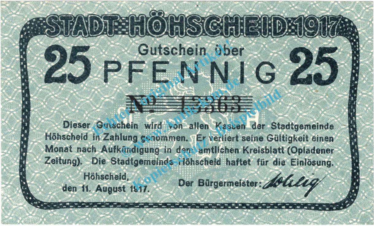 Gutschein / Banknote der Stadt Höhscheid , Kleingeldersatz Verkehrsausgabe
