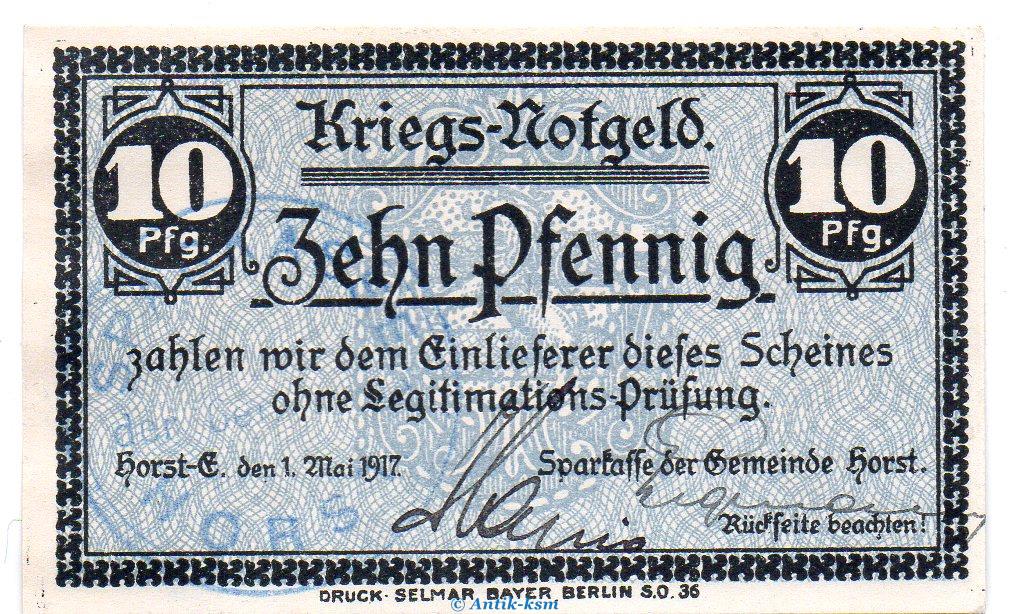 Banknote , Notgeld der Gemeinde Horst-Emscher , Verkehrsausgabe
