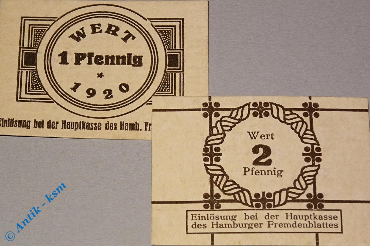 Notgeld Hamburg , Fremdenblatt , Set mit 2 Scheinen , Tieste 2765.150.01 und 02 , Hamburg Verkehrsausgabe