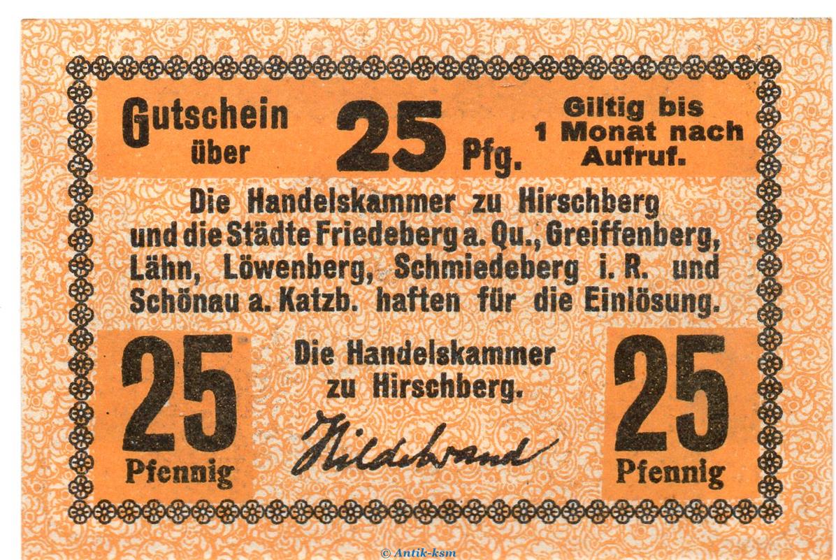 Banknote , Notgeld (gemeinsam) Handelskammer Hirschberg , Verkehrsausgabe