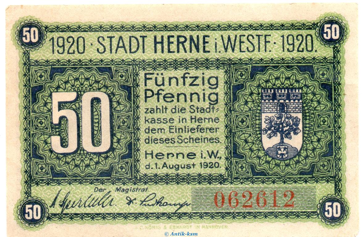 Banknote , Notgeld der Stadt Herne , Verkehrsausgabe
