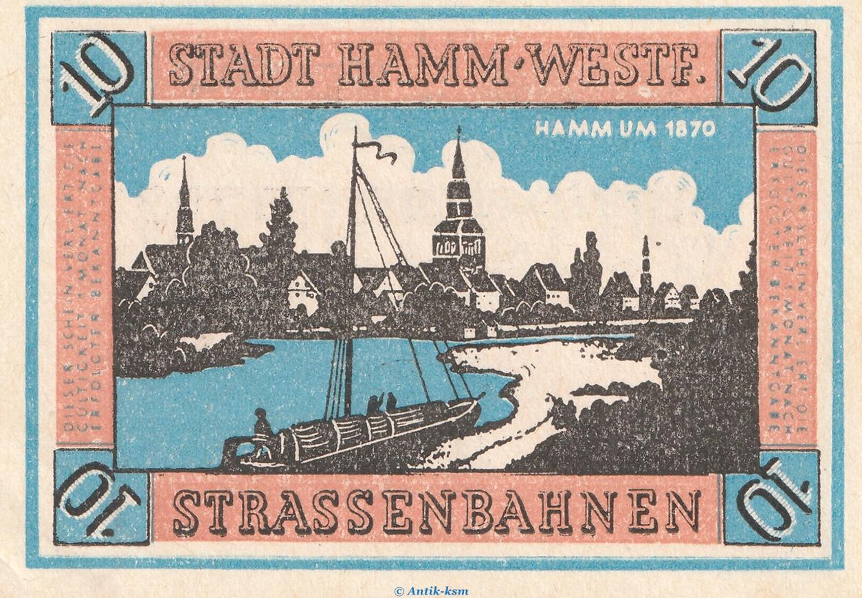 Notgeld Strassenbahn Hamm , Topp 390.1 , 10 Pfennig in kfr. o.D. Westfalen Notgeld 1945-48