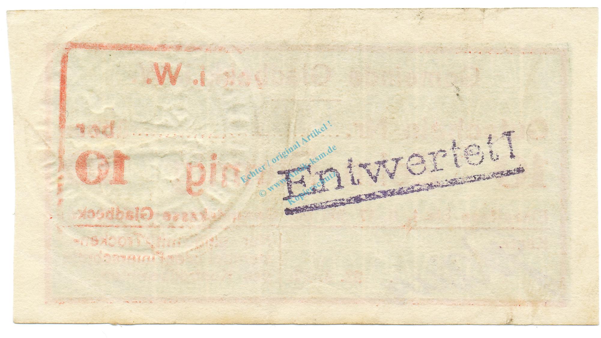 Gladbeck , Notgeld 10 Pfennig Schein gbr.E Tieste 2240.05.05 , Westfalen 1917 Verkehrsausgabe