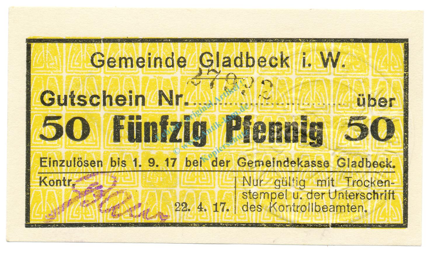 Gutschein, Notgeld : Gemeinde Gladbeck, Entwertet,