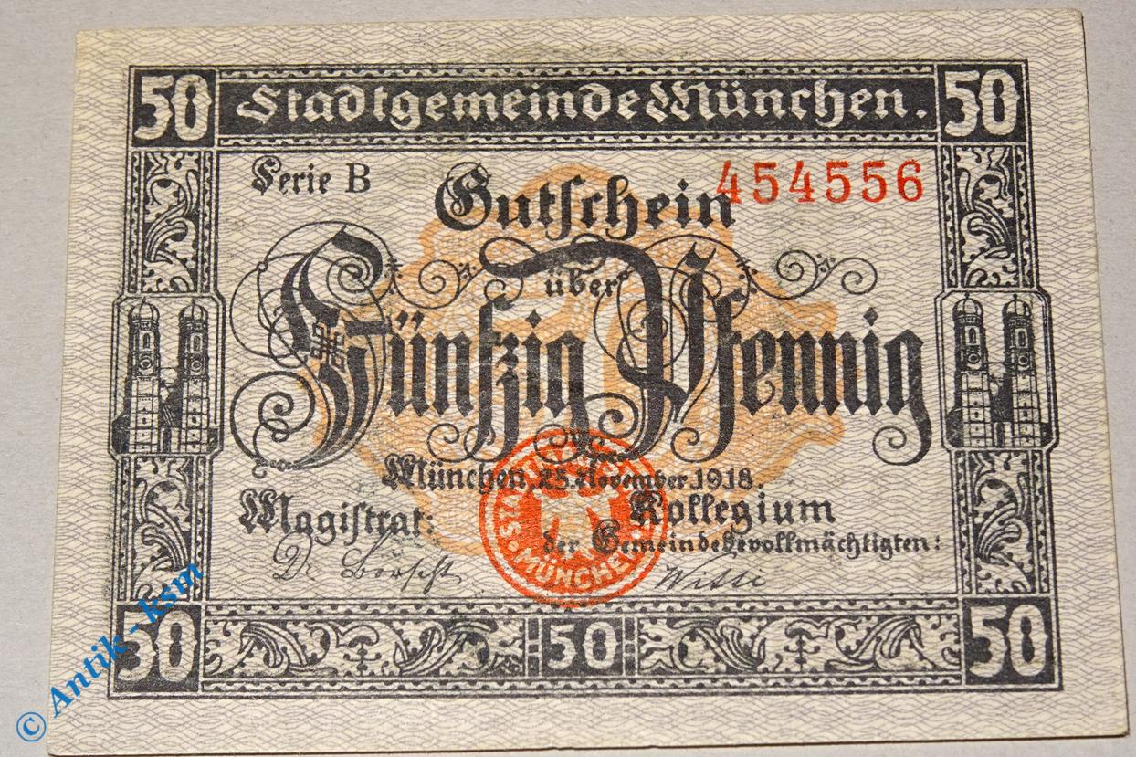 Notgeld München , Stadt , 50 Pfennig Schein , Tieste 4680.1810.01 , von 1918 , Bayern Verkehrsausgabe