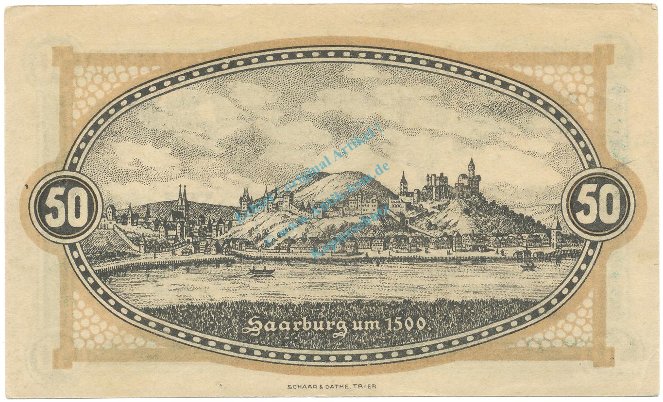 Saarburg , Notgeld 50 Pfennig Schein unc-kfr. Ti.6340.10.03 RHL 1920 Verkehrsausgabe -4313-