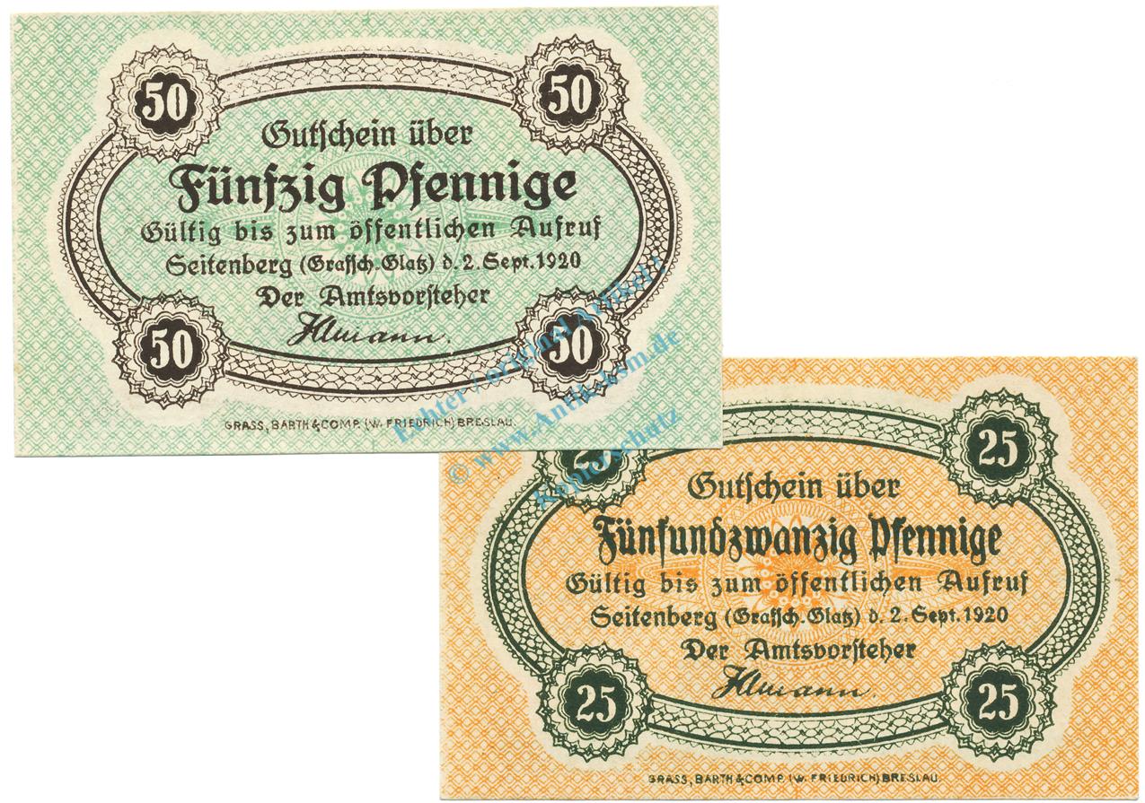 Seitenberg , Notgeld Set 2 Scheine unc-kfr. Ti.6850.05.05-06 SLN 1920 Verkehrsausgabe -4265-