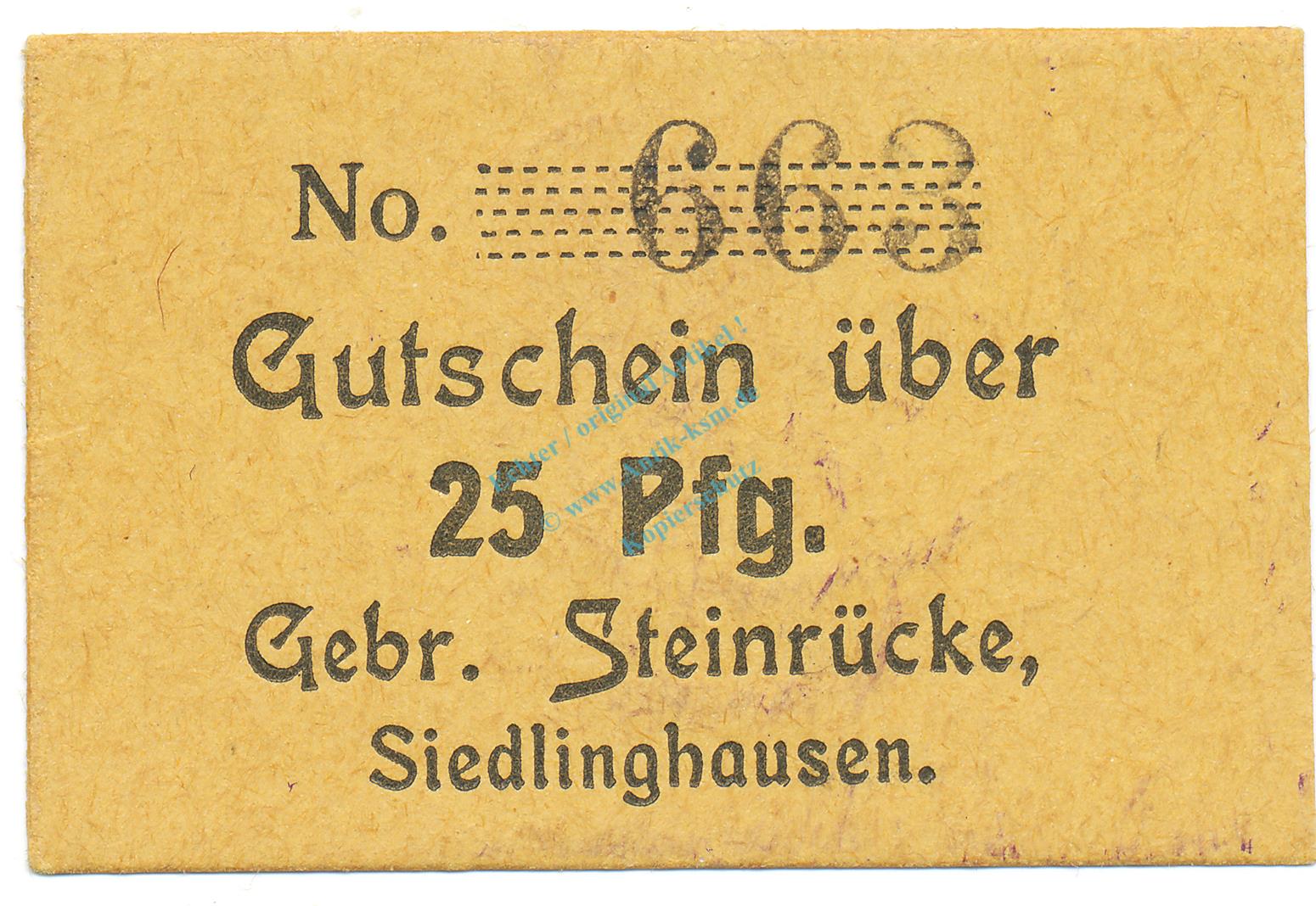 Gutschein OHNE Notgeld : Gebr. Steinrücke , Siedlinghausen