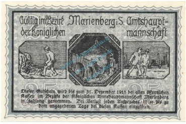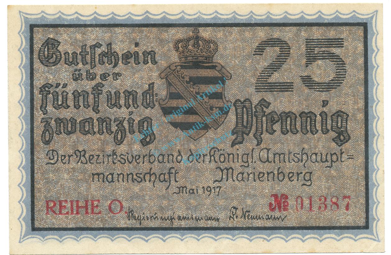 Marienberg , Notgeld 25 Pfennig Schein unc-kfr. Ti.4370.05.06 , S 1917 Verkehrsausgabe -4199-