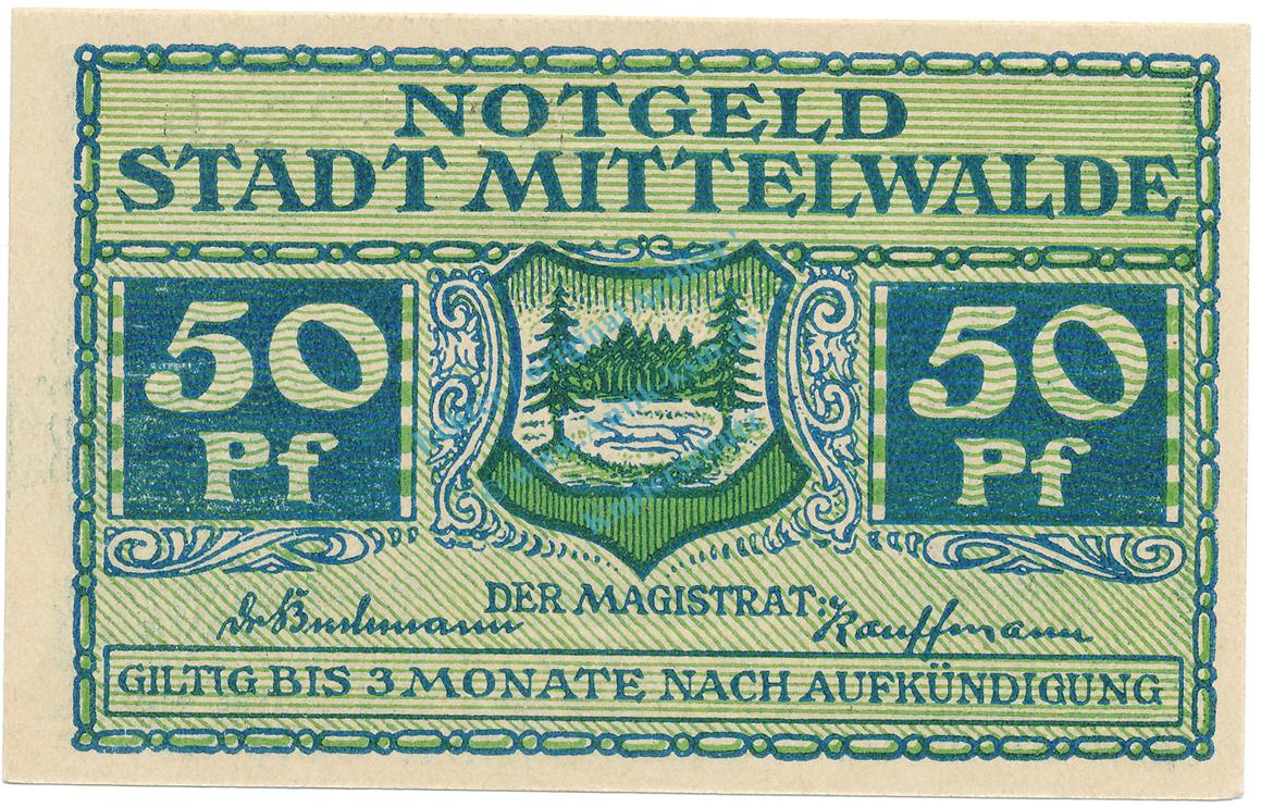 Mittelwalde , Notgeld 50 Pfennig Schein unc-kfr. Ti.4585.095.03 , SLN o.D. Verkehrsausgabe -4189-