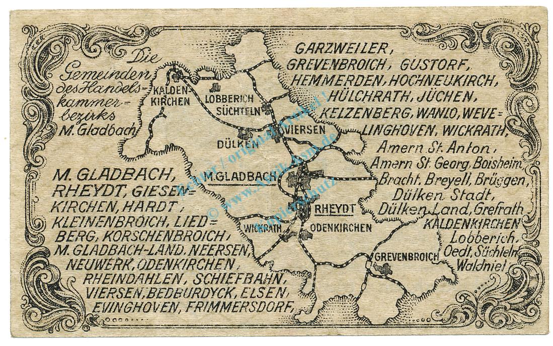 München Gladbach , Notgeld 50 Pfennig Schein unc-kfr. Ti.4710.05.02 , RHL 1917 Verkehrsausgabe -4184-