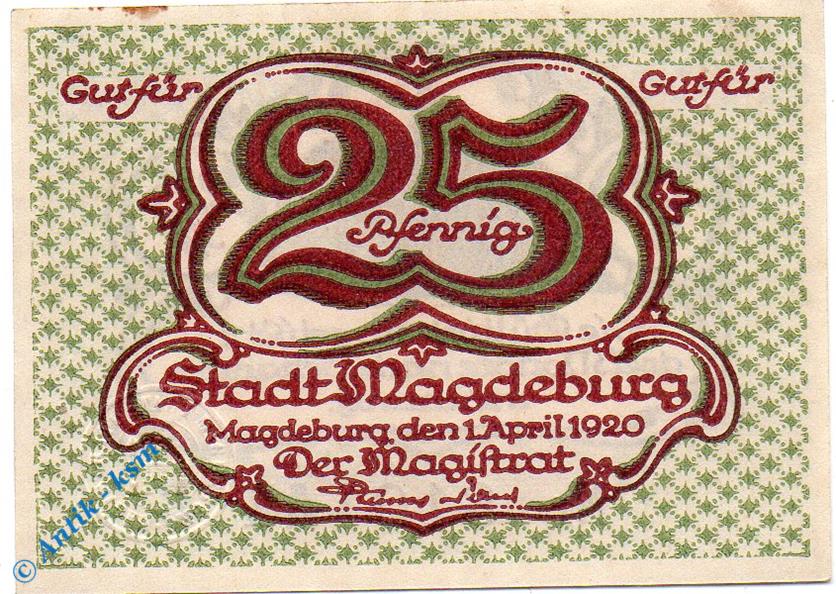 Notgeld Magdeburg , 25 Pfennig Schein , Tieste 4330.40.16 , von 1920 , Sachsen Verkehrsausgabe