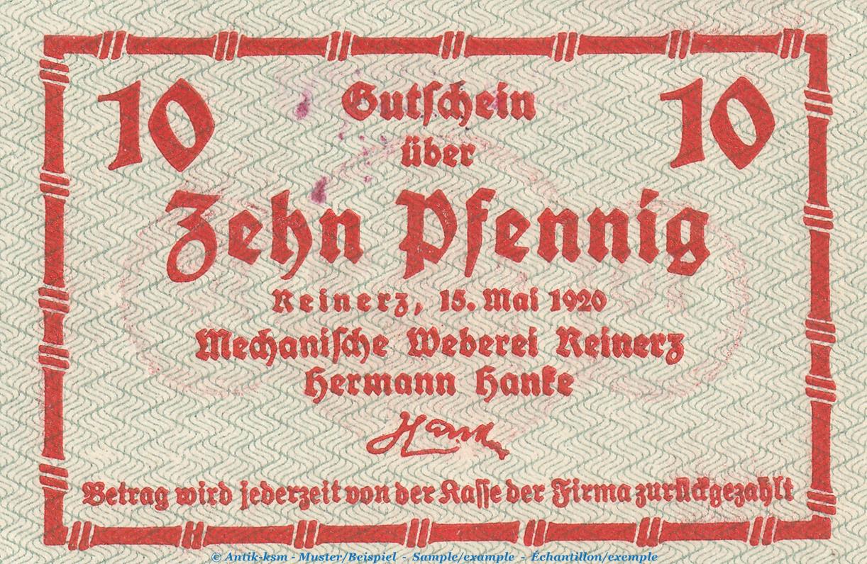 Gutschein / Banknote Hermann Hanke mechanische Weberei Reinerz , Verkehrsausgabe