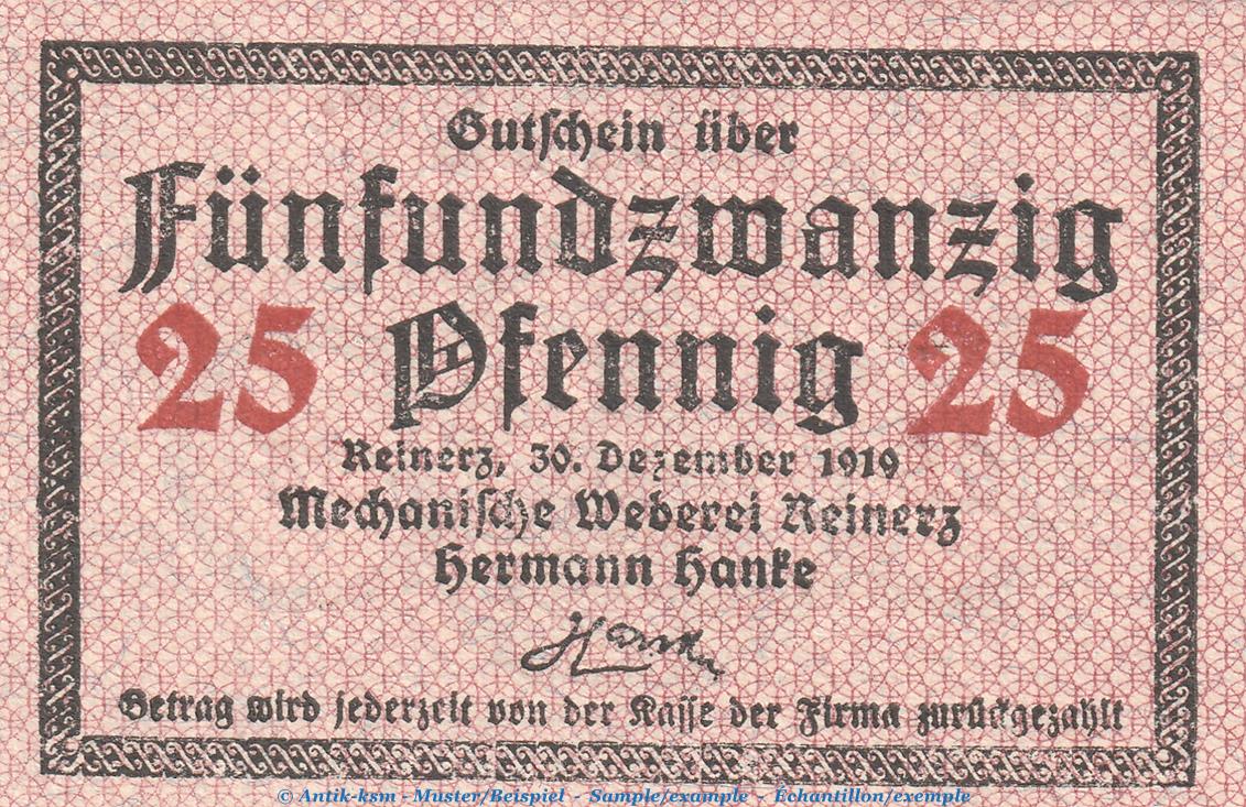 Gutschein / Banknote Hermann Hanke mechanische Weberei Reinerz , Verkehrsausgabe