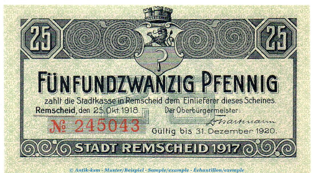 Der Notgeldsatz besteht aus : 25 Pfennig Schein