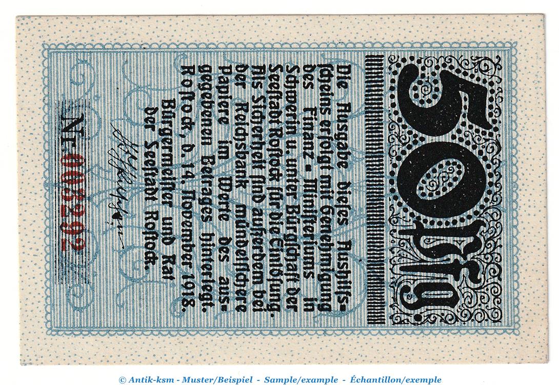 Notgeld Rostocker Bank 6220.15.01 , 50 Pfennig KN auf Raster in kfr. von 1918 , Mecklenburg Schwerin Verkehrsausgabe