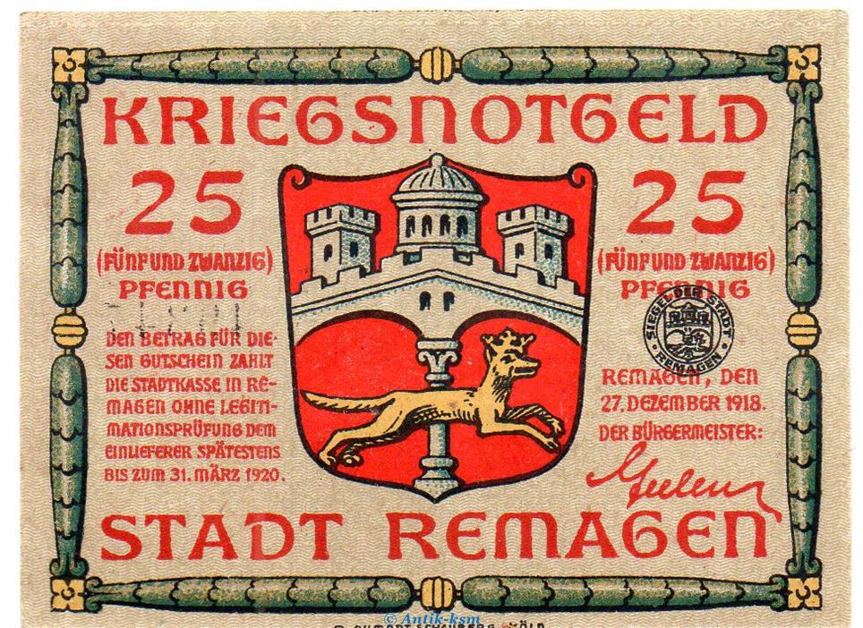 Banknote , Notgeld der Stadt Remagen , Verkehrsausgabe
