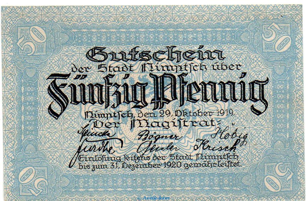 Banknote , Notgeld der Stadt Nimptsch , Verkehrsausgabe