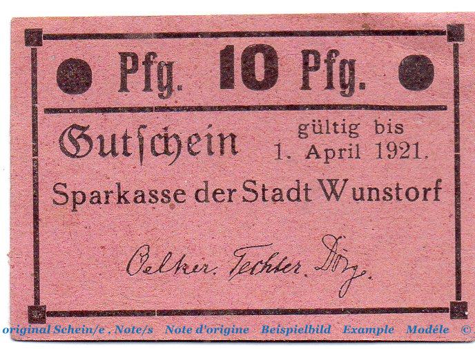 Der Notgeldsatz besteht aus : 10 Pfennig Schein , 46 mm