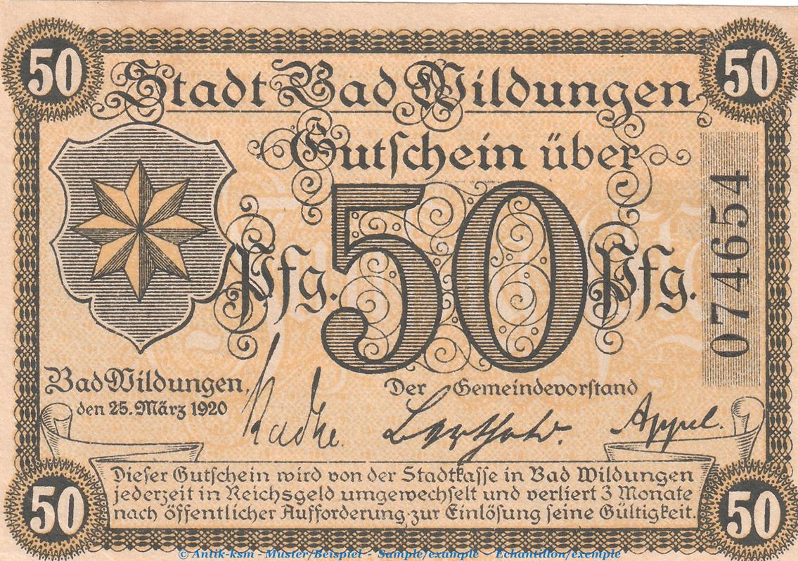 Gutschein / Banknote der Stadt Bad Wildungen , Verkehrsausgabe