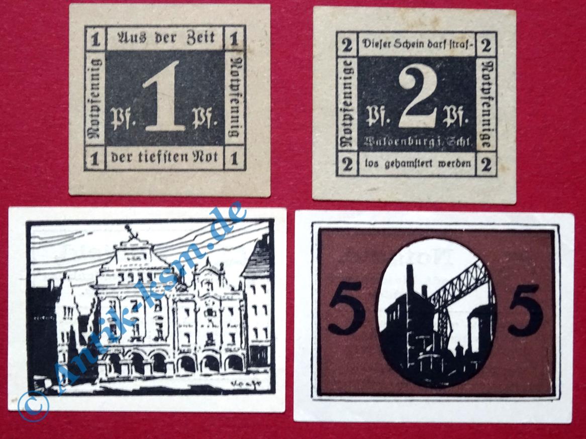 Waldenburg , Notgeld Set mit 4 Scheinen in kfr. Tieste 7660.205-216 , Schlesien o.D. Verkehrsausgabe