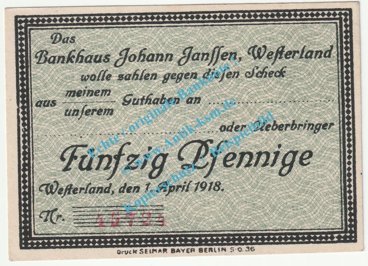 Gutschein / Banknote Joh. Janssen Bankhaus Westerland , Verkehrsausgabe