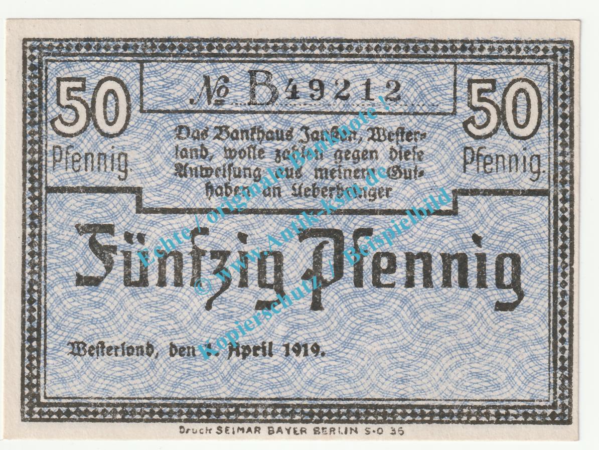 Gutschein / Banknote Joh. Janssen Bankhaus Westerland , Verkehrsausgabe