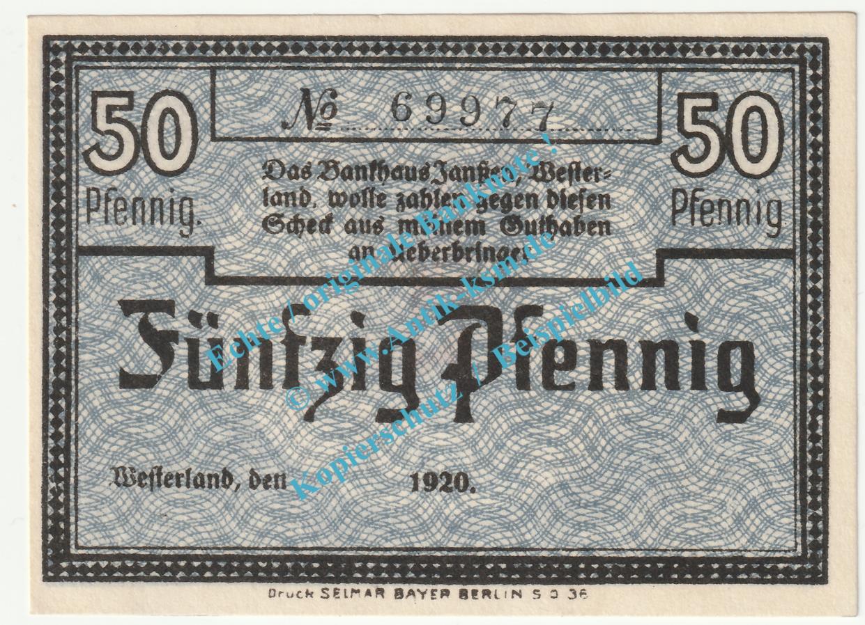 Gutschein / Banknote Joh. Janssen Bankhaus Westerland , Verkehrsausgabe
